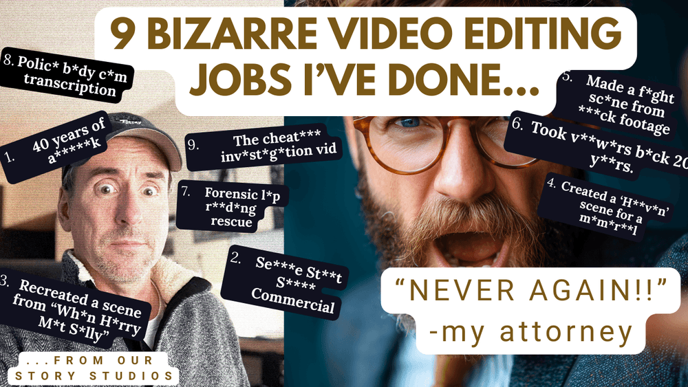 So there you go - nine bizarre video editing jobs, and two that my attorney told me that I probably should never take again. So did you guys guess which two? Let me know in the comments.